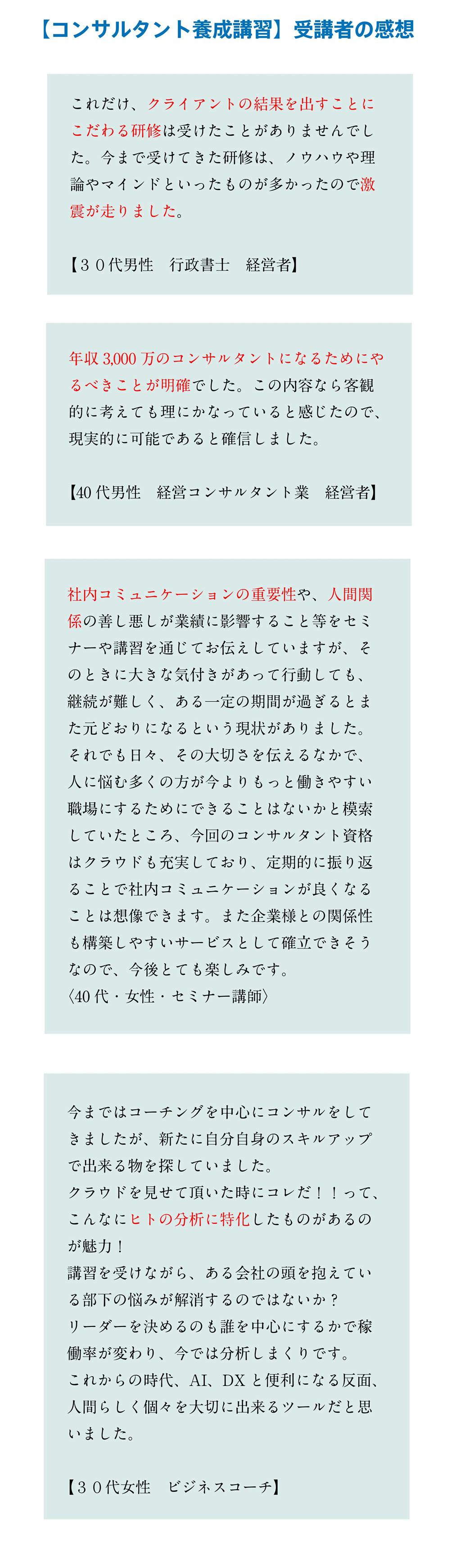 コンサルタント養成講習〈STANDARDコース398,200円〉または〈PREMIUMコース698,2000円〉