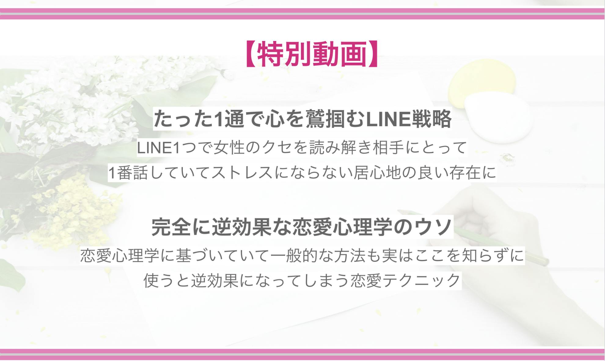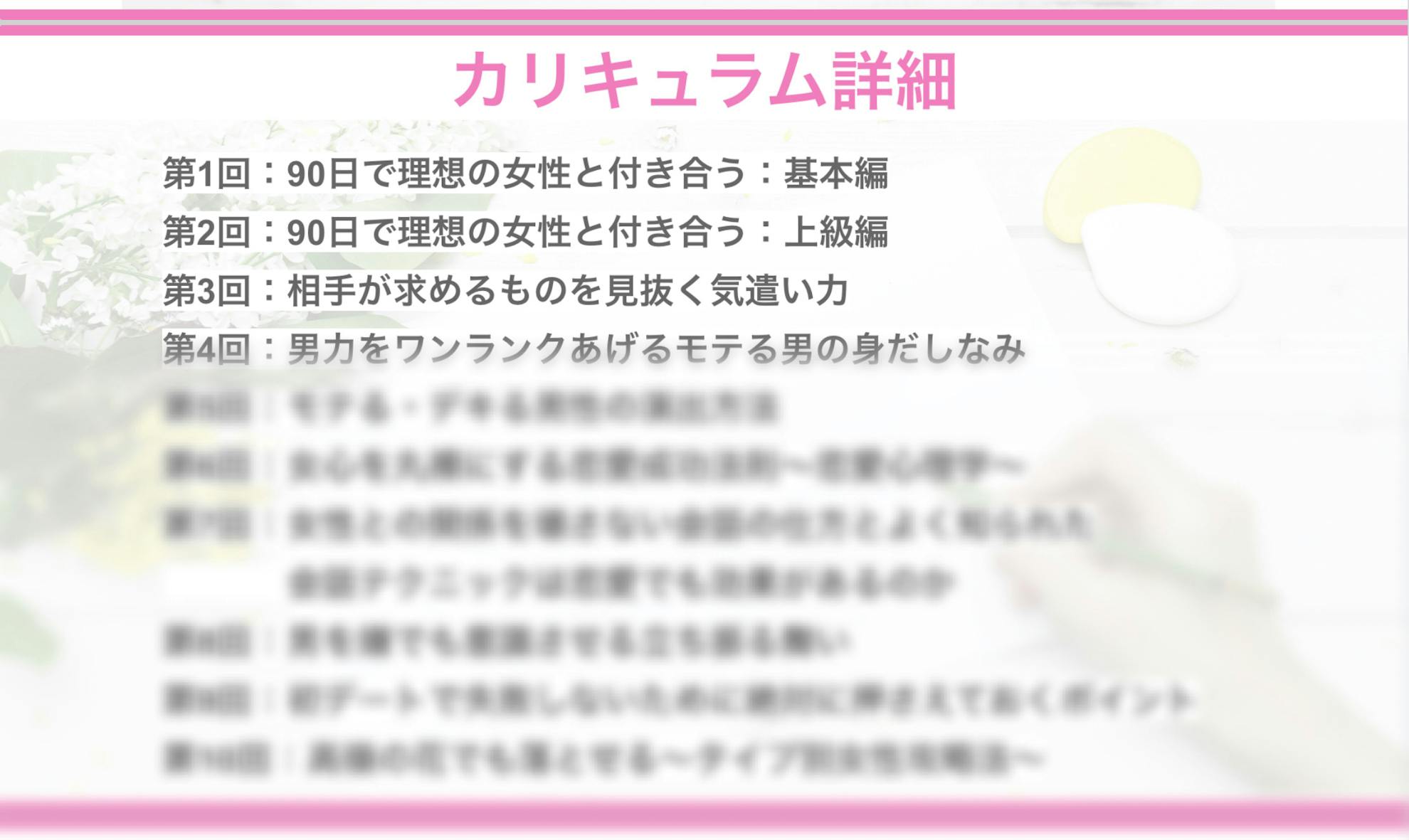 50歳の声を聞いて、女性とお付き合いできるイメージも湧かず、フラれて傷つくのを怖れて、恋愛に蓋をしていた自分でしたが、自宅でこっそり恋愛ハウツーが学べる講座の存在を知り、個別相談の後購入してみました。週2回だけで大丈夫?と最初は半信半疑でしたが、無料配信のYouTubeとは違い、目からウロコの恋愛マニュアルを乾いたスポンジのように吸収している自分がいました。そんな時、カフェで素敵な女性と出会い、講座のマニュアル通りのアプローチで、スムーズにその素敵な女性とデートに出かけるまでになりました。やはり逃げていてはダメですね。半年前の自分からは今の姿は想像できません。