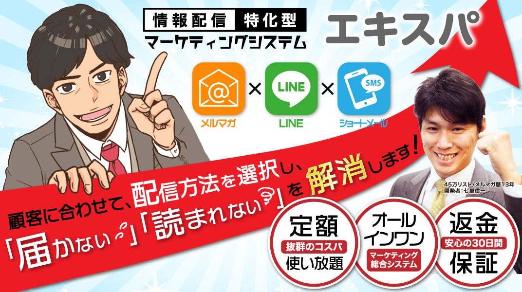 どんなビジネスモデルでも、上記の流れがスムーズにいくことで売上が安定します。逆を言うと、どこか 一つでもサボってしまったり作業が遅かったりすると、一気に流れが悪くなり売上も下がります。 御社の問題は、「情報配信」に留まらずマーケティング全般の連動ではないでしょうか? マーケティング方法が多様化すると同時に、いろいろなツールやシステムが必要となります。しかし、作 業を少しでも楽にしたいと導入したシステムが多すぎて、逆に作業を不効率化していないでしょうか? エキスパでは、それらの問題を解決するために、集客から顧客管理まで、全てのパートをサポートできる 機能をご用意しています。顧客情報や、作業履歴などの情報を集中し、コスト軽減になり、作業効率もア ップし今よりも楽に売上が安定します。