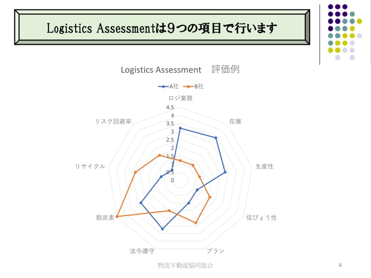 Logistics Assessmentは企業の健康診断だから定量的に測定して、判断します